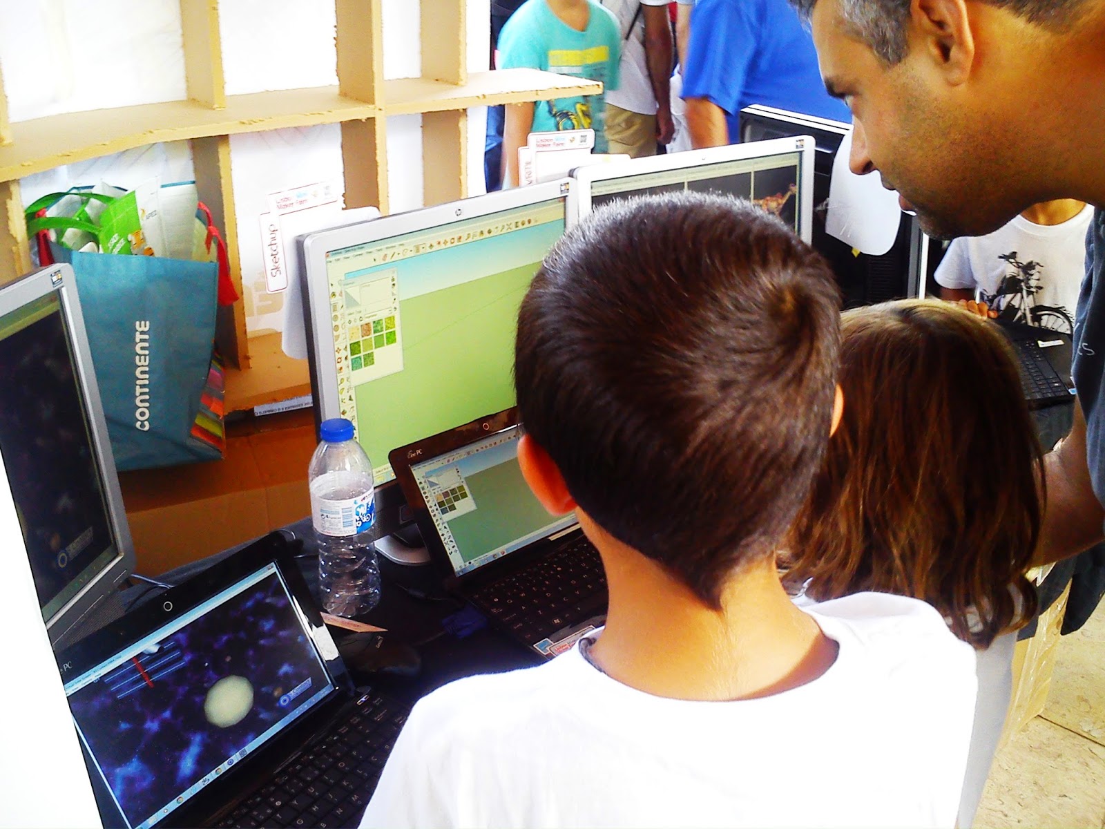 Sinto-me pequenino. Honrado e deslumbrado por poder mostrar uma forma de aprendizagem criativa cujos resultados são surpreendentes pela inventividade e capacidade das crianças no dominar ferramentas complexas, mas estar ao lado de hackers e makers que constroem máquinas de fabricação, robots, drones, arcades de realidade virtual e tantas outras experiências criativas com hardware e software utilizados de formas impensáveis deixa-me esmagado. Ter as criações virtuais de crianças ao lado de tanta coisa espantosa é uma experiência... espantosa.
