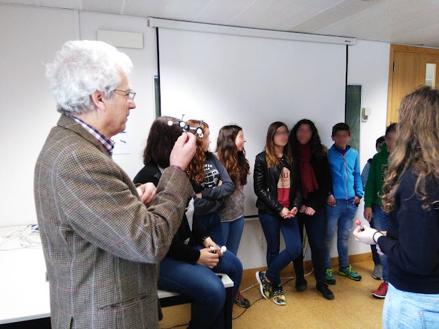 A Dr.ª Célia Romão levou-nos a conhecer o seu espaço de investigação, a estrutura tridimensional das proteínas, também com o objectivo de aplicações na saúde. Os alunos ficaram a conhecer a cristalização das proteínas para investigação, as representações tridimensionais que permitem aos investigadores estudar as relações entre compostos, e visitaram a sala de cristalografia por raios X, que permite ver dentro das substâncias. Ainda ficaram a conhecer outro efeito do azoto líquido, que os encantou.