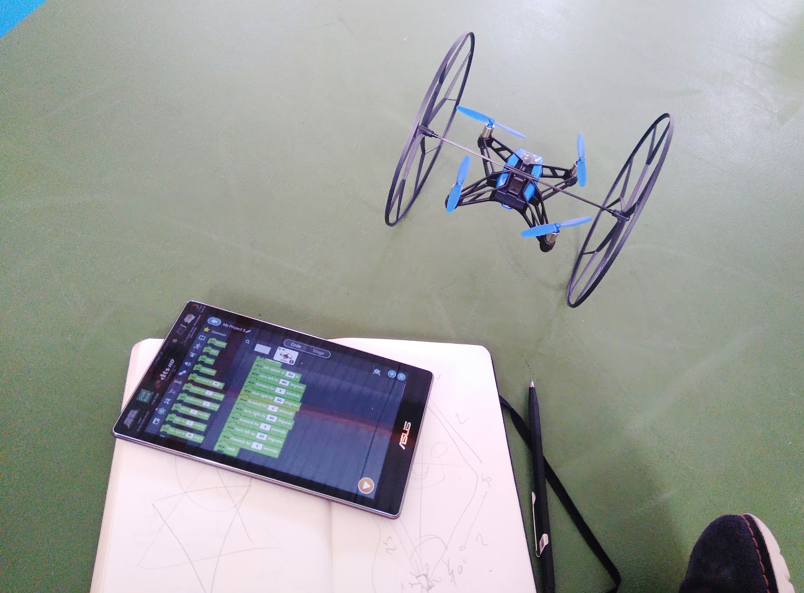 Quinta feira é o dia da Programação no 1 CEB. Estamos a experimentar como usar os drones em actividade com os alunos. Para já, sentamo-nos no chão com os alunos e começamos a testar blocos de comandos. É um início, e estamos a aprender!